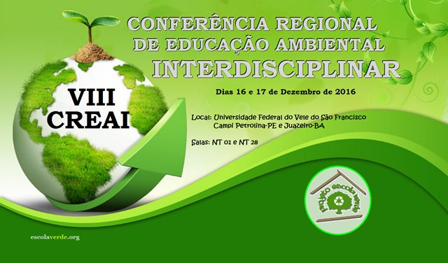 Para capacitar seus integrantes e discutir as ações práticas desenvolvidas pelo projeto nas escolas públicas da região, o Projeto Escola Verde (PEV) da Universidade Federal do Vale do São Francisco (Univasf) promoverá a VIII Conferência Regional de Educação Ambiental Interdisciplinar (CREAI), nos dias 16 e 17 de dezembro. Com o tema “Interdisciplinaridade: teorias e práticas”, a programação do evento acontecerá na Univasf, nos campi Petrolina Centro e Juazeiro. Além de membros internos, a comunidade externa também poderá participar do evento. As inscrições são gratuitas e estão abertas até 10 de dezembro.