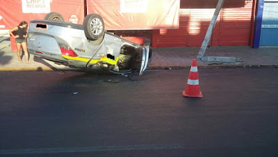 No domingo (29), no final tarde, na avenida São Francisco em frente a uma farmácia, um taxista perdeu o controle do veiculo, capotou e bateu em um poste. Não há informações se houve feridos.