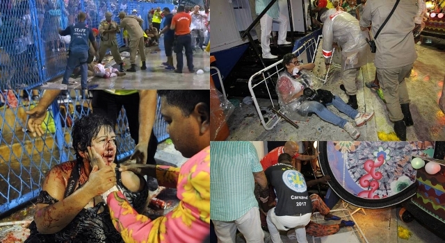 De acordo com informações da TV Globo, o carro alegórico apresentou problemas quando foi acoplado, ocasionando uma curva violenta para a esquerda, atingido pessoas do lado da arquibancada. Logo depois, a alegoria foi para o lado direito e atingiu a grade e pessoas que estavam por ali.