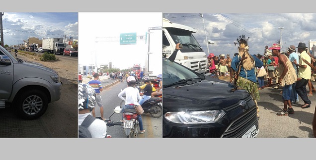 Ponte Presidente Eurico Gaspar Dutra, interditada nesta tarde de quarta-feira 1º de fevereiro, por índios da Tribo Tumbalalá de Curaçá-BA.