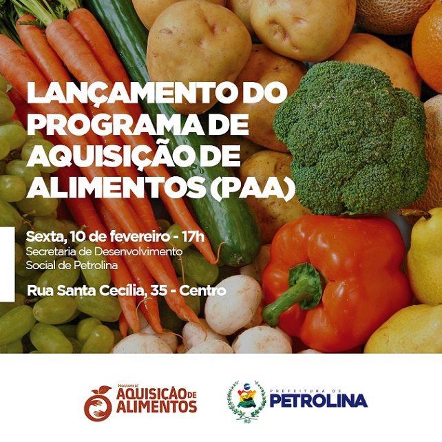 Uma boa notícia para os agricultores da região. Visando promover o acesso à alimentação e incentivar a agricultura familiar, a Prefeitura de Petrolina lança, nesta sexta-feira (10), o Programa de Aquisição de Alimentos (PAA).