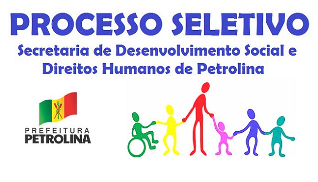 A Secretaria de Desenvolvimento Social e Direitos Humanos de Petrolina abre inscrições para a contratação de Auxiliar Administrativo, Cozinheiro, Auxiliar de Limpeza, Motorista, Digitador/Entrevistador, Educador Social, Advogado, Assistente Social, Psicólogo, Nutricionista e Coordenador em um total de 30 vagas imediatas e mais cadastro de reserva.