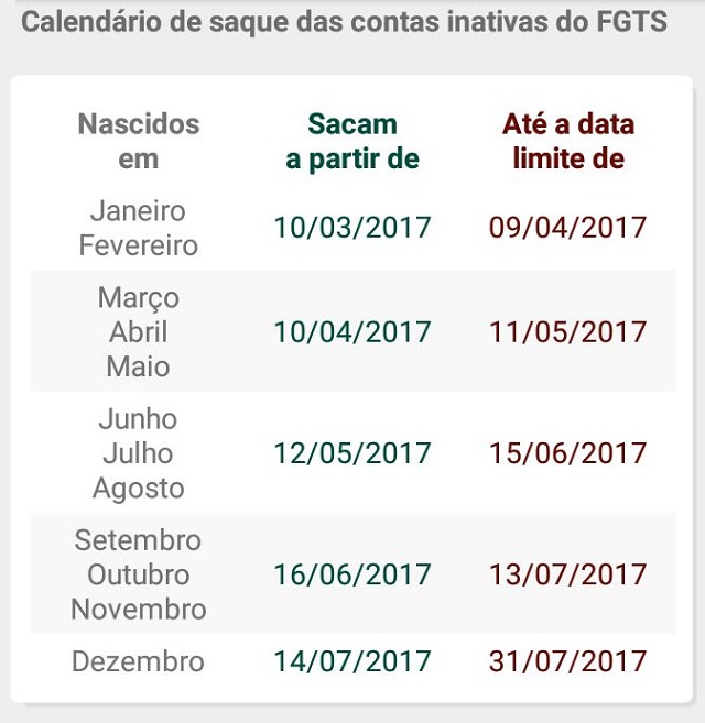 Lembrando que, são contas inativas aquelas que o trabalhador pediu demissão ou foi mandado embora por justa causa até 31 de dezembro de 2015. A partir desta sexta-feira 10, mais de 4,8 milhões de trabalhadores nascidos em janeiro e fevereiro poderão retirar o dinheiro que até então era bloqueado.