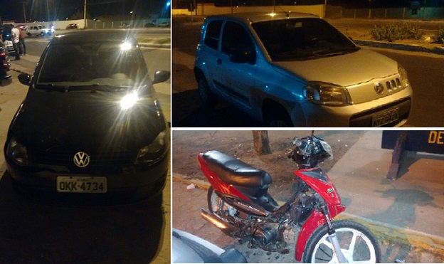 Diante dos fatos, os acusados, os veículos e todo material apreendido foram conduzidos para a Delegacia de Plantão, onde foram apresentados e autuados em flagrante delito.