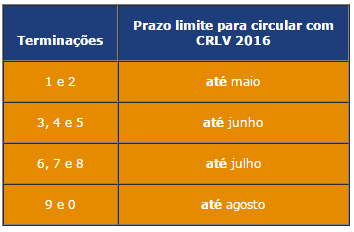 Os condutores de veículos com placas terminadas em 1 e 2 só podem dirigir com o CRLV 2016 até hoje quarta-feira 31/05/2017.