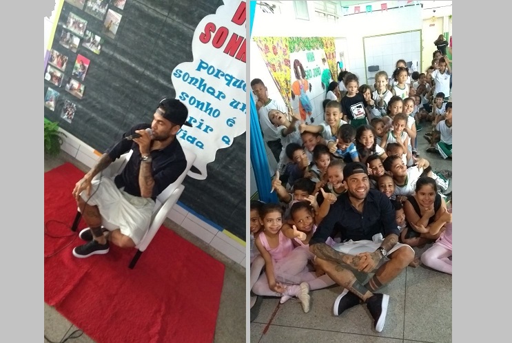 O lateral direito e jogador da Seleção Brasileira de Futebol, Daniel Alves, participou na manhã desta segunda-feira (26), do projeto ‘Teia de Sonhos’, realizado pela Escola Municipal São Domingos Sávio, em Petrolina.