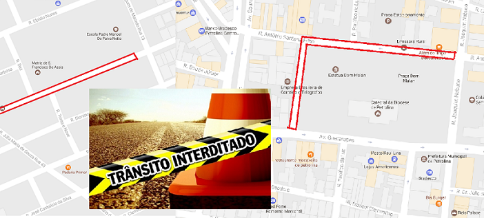 No Centro, próximo a Catedral, no entorno das praças Dom Malam e Maria Auxiliadora, haverá interdição total que se iniciará nesta quarta-feira (14), às 22h até após a celebração da Santa Missa na quinta-feira (15).