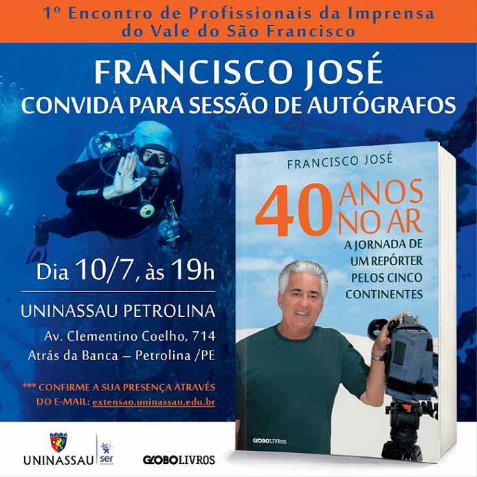 O encontro contará com a presença do jornalista Francisco José. Ele fará o lançamento do seu livro “40 anos no Ar – A Jornada de um repórter pelos cinco continentes”, além de sessão de autógrafos.