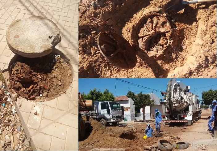 O problema é que as equipes da Companhia e da Secretaria de Infraestrutura, Habitação e Mobilidade (SEINFRAHM) se depararam com um problema durante a execução do trabalho que deveria ser realizado na rua 07 do bairro. Atos de vandalismo têm impedido o avanço da obra, já que por três vezes parte dos poços de visitas e caixas de inspeções que estão sendo recuperados foram encontrados soterrados, ocasionando a perda total do serviço.