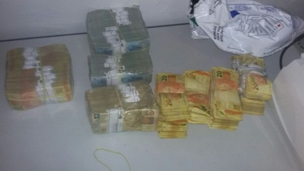 Na fuga, integrantes da quadrilha criminosa abandonaram os seguintes materiais: 01 FUZIL automático 7.62 sem marca ou modelo, 01 MOSQUEFAL 7.62 sem marca ou modelo, 03 ESPINGARDAS cal. 12, PARTE de uma ESPINGARDA cal. 12 sem modelo e sem número de serie, 02 REVÓLVERES cal. 38, 03 coletes balísticos, 02 bananas de dinamite, 06 munições de calibres 12, 03 intactas e 03 deflagradas, a quantia em espécie de R$ 219.280,00 (duzentos e dezenove mil e duzentos e oitenta reais) fruto do assalto, além da apreensão dos veículos utilizados pelos meliantes na ação criminosa, uma HYLUX TOYOTA CD 4X4 SRV PLACA PDA-5424 e um CRUZE LT BRANCO, PLACA QFG-0480.