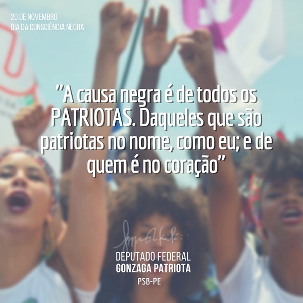 Para o legislador, é preciso que todos os brasileiros abracem as lutas da causa negra como suas próprias. “Em nome do PSB, peço: não desistam, continuem essa luta que é da sociedade brasileira. A causa negra é de todos os PATRIOTAS: de quem é Patriota no nome, como eu, e de quem é no coração”, destacou.