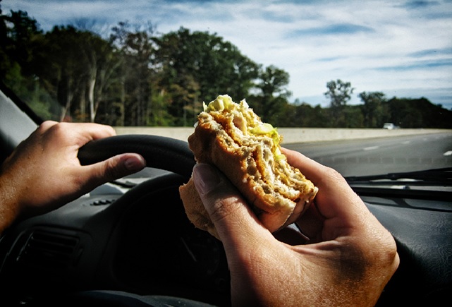 “Motorista que come, bebe ou fuma, conversa distraidamente com alguém, assiste TV ou DVD instalados no veículo, entre outras posturas de desatenção ao trânsito, estão sujeitos à multa”, explica.