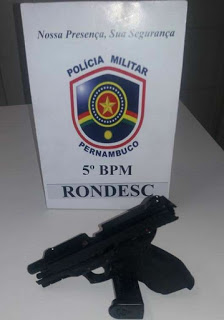 O elemento que estava no veículo, vulgo Fábio. O mesmo estava de posse da arma do crime. Um simulacro de pistola, modelo Airsoft .40, a qual foi aprendida.