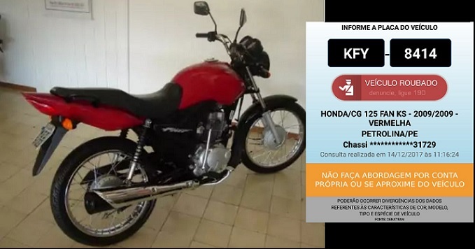 O proprietário usa a moto para trabalhar. O mesmo está dando uma RECOMPENSA de R$ 1.000,00 para quem dar o paradeiro exato da moto.
