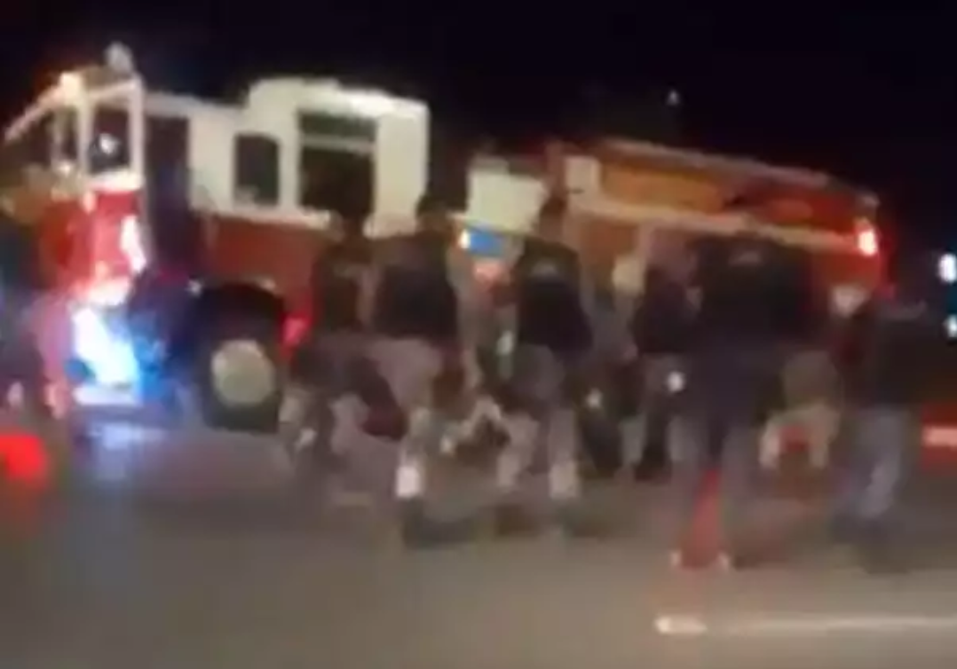 Vários PMs desceram das viaturas de arma em punho, temendo troca de tiros, mas o soldado bombeiro foi rendido e algemado no asfalto.