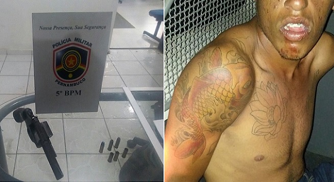 Os PMs deram voz de parada e um dos ocupantes empreendeu fuga tomando destino ignorado, ficando a pessoa de BRENDON KEVIN DA SILVA NASCIMENTO, idade 18 anos. O mesmo tentou se desfazer de um revolver cal. 38 de marca Taurus e Numeração 942495.