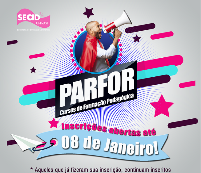 As inscrições para o preenchimento de 930 vagas para Cursos de Formação Pedagógica, ofertados na modalidade a distância pela Universidade Federal do Vale do São Francisco (Univasf), por meio da Secretaria de Educação a Distância (SEaD), foram reabertas e podem ser feitas até 8 de janeiro de 2018. Os cursos são nas áreas de Artes Visuais, Ciências Biológicas, Educação Física, Física, Matemática e Química e têm por objetivo a formação, em nível superior, de profissionais do magistério para a educação básica.