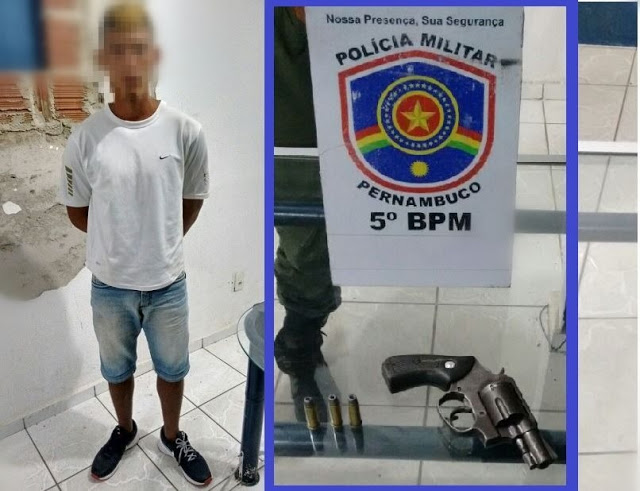 O elemento detido de nome Breno Barbosa Rodrigues, foi abordado e o objeto jogado fora um revólver calibre .38 de marca Rossi com três munições e sem numeração.