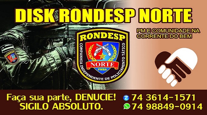 Será lançado na próxima segunda-feira 08/01/2018 o “DISQUE DENUNCIA RONDESP NORTE”.