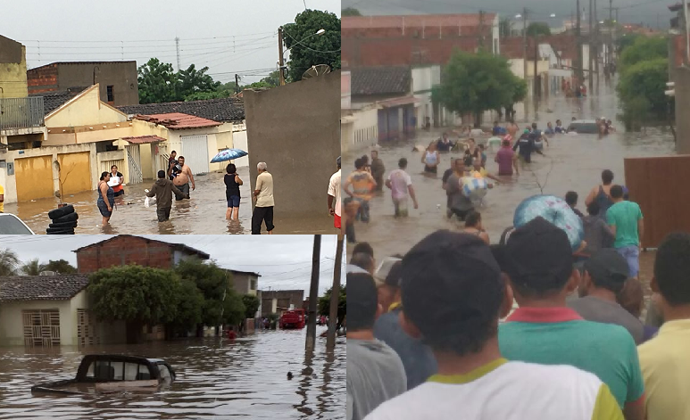 Cacimba do Ôco, que passam próximo a zona urbana da cidade, transbordaram, com isso alagou algumas ruas no centro e bairros da cidade.
