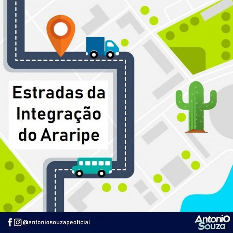 O empreendedor social e pré-candidato ao senado Antonio Souza,REDE, declarou apoio ao projeto encabeçado por Ronaldo Lacerda, que visa a construção das estradas da Integração do Araripe. O objetivo é a pavimentação das PEs 615 e 630, que integrarão as cidades do Araripe. Além de Araripina, as cidades de Trindade, Ipubi, Santa Filomena e Ouricuri serão beneficiadas.