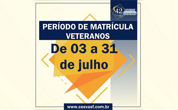De 03 a 31 de julho, o aluno CESVASF poderá renovar a matrícula.
