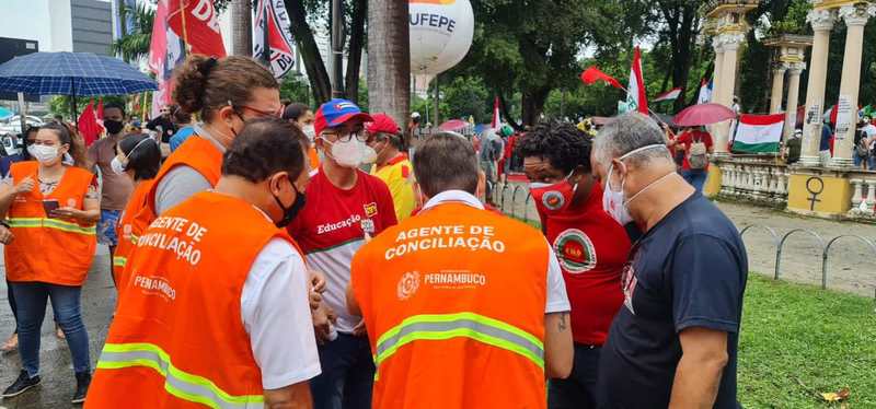 Agentes de Conciliação do Governo de Pernambuco garantem interlocução com manifestantes e protesto acontece em clima de tranquilidade