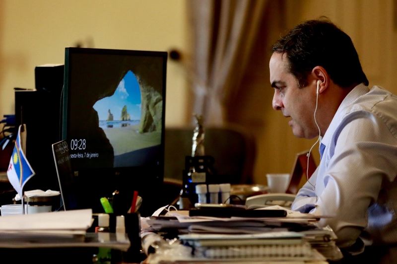 O governador Paulo Câmara se reuniu, na manhã desta sexta-feira (07.01), por videoconferência, com prefeitos de todas as regiões do estado para compartilhar o atual momento da pandemia da Covid-19 e a aceleração dos casos de Influenza. Paulo Câmara assegurou que a ampliação da rede de leitos de terapia intensiva, do número de testes rápidos e o incentivo à vacinação serão intensificados. O governador solicitou ainda a colaboração dos prefeitos para o reforço no atendimento nas unidades municipais de saúde. Também estiveram presentes na conversa o presidente da Associação Municipalista de Pernambuco (Amupe), José Patriota; o procurador-geral do Ministério Público de Pernambuco, Paulo Augusto de Freitas Oliveira; e o secretário estadual de Saúde, André Longo.