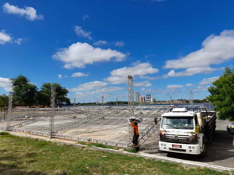 Estrutura do Salão de Turismo começa a ser levantada na orla de Petrolina