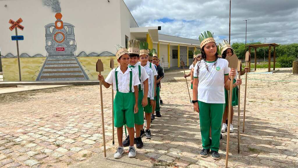 A gestora da unidade, Virna Sarissa, explicou que a culminância foi dividida em duas partes e integra um projeto em que os alunos viajam e chegam a Portugal, mas tem como foco principal os povos originários. “Hoje tivemos as apresentações artísticas, com a dança do Toré e uma apresentação musical envolvendo todos os alunos da escola em uma grande roda. Na próxima sexta-feira (26), realizaremos uma feira, com oficinas de produção de adereços e com a presença de alimentos característicos dos povos originários”, disse.
