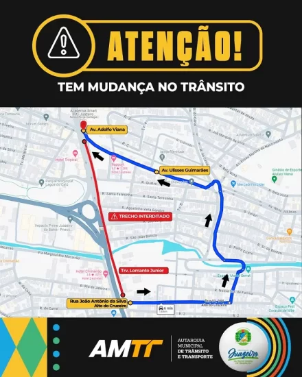Quem vier pela Tv. Lomanto Junior sentido Av. Adolfo terá que obrigatoriamente entrar na rua João Antônio da Silva (lateral da antiga Lucas Pneus), no bairro Alto do Cruzeiro, entrar na Tv. Nova Jerusalém, fazer o contorno na ponte do canal do Novo Encontro, seguir pela Av. Luiz Inácio Lula da Silva, fazer o contorno na rotatória do Novo Encontro e seguir pela Rua Ulisses Guimarães até o sinal da Sote.