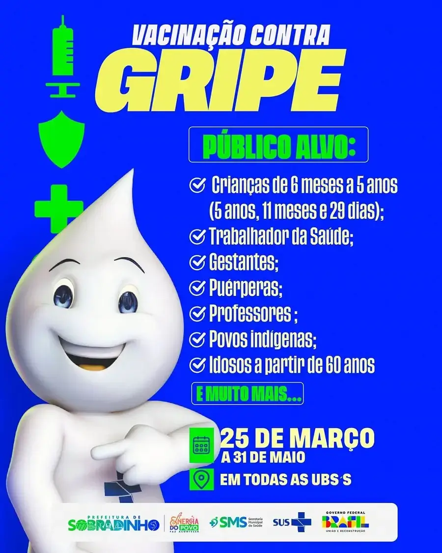A Prefeitura de Sobradinho, através da Secretaria de Saúde, iniciou a campanha de vacinação contra a Gripe (Influenza), que segue até o dia 31 de maio.