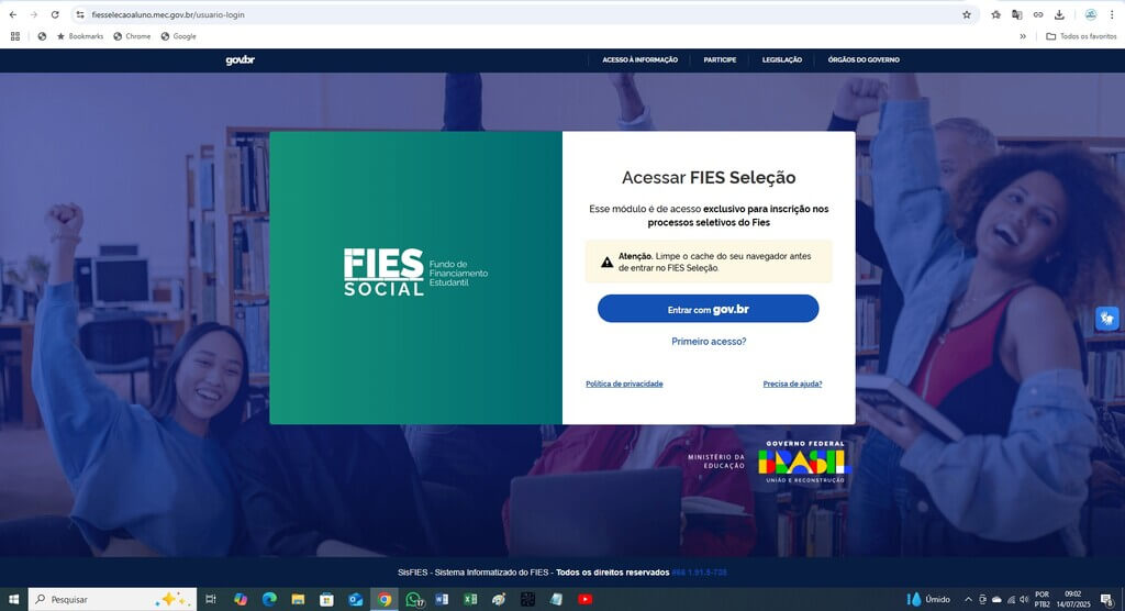 O resultado da chamada regular do segundo semestre de 2025 do Fundo de Financiamento Estudantil (Fies) foi divulgado nesta terça-feira (29). Os estudantes podem acessar o Portal Único de Acesso ao Ensino Superior, com login pelo portal Gov.Br.