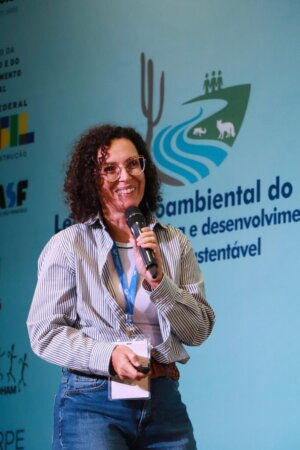 A coordenadora do Cemafauna, professora Dra. Patrícia Nicola, destacou, durante sua participação na Mesa-Redonda 4, as inovações no componente fauna do licenciamento ambiental, ressaltando a relevância dessas iniciativas para a conservação e manejo da biodiversidade da Caatinga, especialmente da fauna. Em sua fala, enfatizou que “cada estrutura que hoje o Cemafauna possui, como os CETRAS móveis e o CETRAS instalado na sede, potencializa as ações de manejo implementadas e fortalece as parcerias estabelecidas no âmbito do PISF, resultando em avanços concretos para a preservação das espécies e a manutenção dos ecossistemas ao longo do canal e nas regiões beneficiadas. Esses resultados comprovam que ciência aplicada e compromisso ambiental podem caminhar lado a lado, gerando benefícios duradouros para o semiárido”.