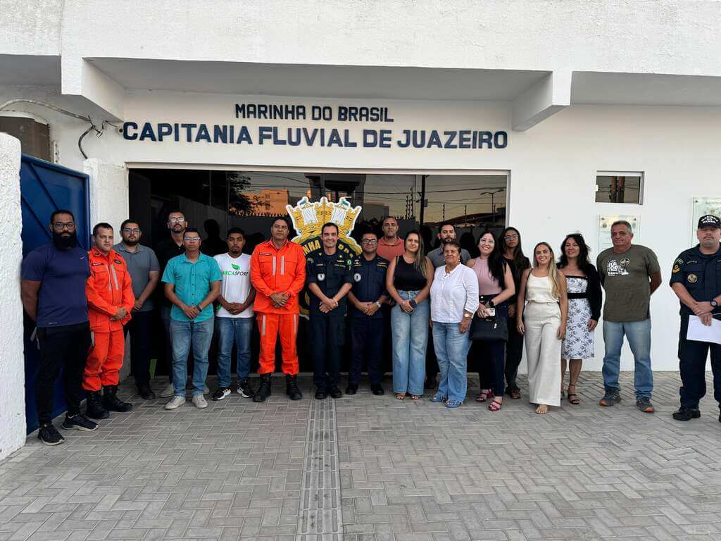 A Capitania Fluvial de Juazeiro realizou, nesta terça-feira (27), uma reunião com representantes de clubes de natação, empresas de caiaque, pilotos de moto aquática, Corpo de Bombeiros, Secretaria Municipal do Meio Ambiente (Sema) de Juazeiro e demais usuários do Rio São Francisco. O encontro foi provocado pelo grupo Sereias do Rio, que levou à Marinha a necessidade de criar um espaço de diálogo entre quem vive e ama o Velho Chico.