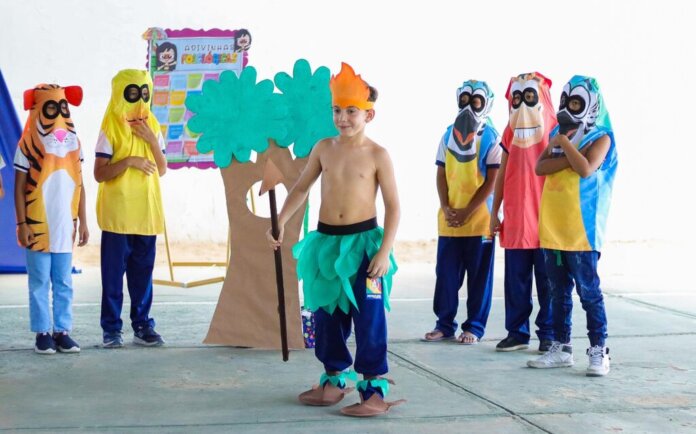 As escolas da rede municipal de Petrolina realizaram uma programação especial em comemoração ao Dia do Folclore, valorizando a cultura popular brasileira e aproximando os estudantes das tradições que fazem parte da identidade nacional e local. Na Escola Municipal Professora Maroquinha, no bairro Areia Branca, o encerramento das atividades aconteceu na última sexta-feira (22), na quadra da unidade, com apresentações artísticas e culturais envolvendo todas as turmas do 1º ao 5º ano.