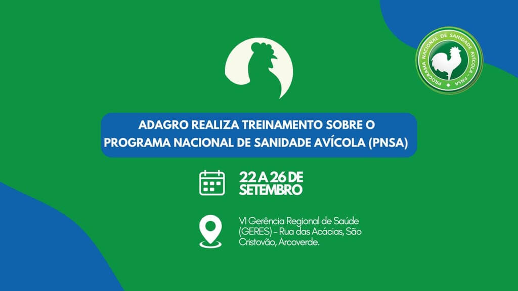 Também estão previstas apresentações sobre a legislação federal e estadual; Portaria da Adagro nº 026/2025, que regulariza os empreendimentos avícolas de pequena escala no estado; exigências para o trânsito da cama de aviário; educação sanitária no campo; além da apresentação do Plano Operacional Estadual de Emergências Zoossanitárias.