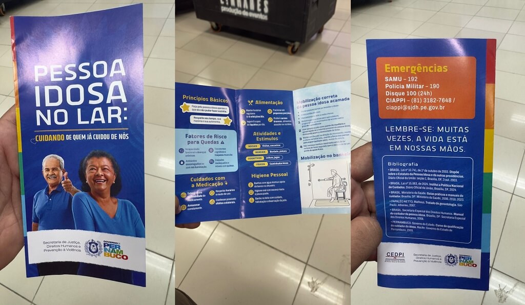 Como parte das ações, a Secretaria lançou um folder orientativo sobre cuidados da pessoa idosa no lar, com informações objetivas e práticas para familiares e cuidadores, além de disponibilizar materiais educativos e cursos de capacitação voltados à formação de agentes multiplicadores nesse tema.