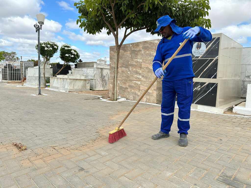 Aproximadamente, 50 profissionais da limpeza urbana estão realizando os serviços de capina, poda de árvores, varrição, coleta de resíduos, pintura de meio-fio e de muros. Os mutirões acontecem nos cemitérios do Campo da Paz, no bairro Henrique Leite; Campo da Esperança, no bairro João de Deus; Campo das Flores, no Centro e os cemitérios do distrito de Rajada. Mesmo não sendo administrado pela Prefeitura, os cemitérios do Carneiro e do interior, a exemplo de Sítio São João, Poço da Cruz, N-7, N-10, Cacimba de Baltazar, KM-25, entre outros, também estão recebendo reforços na limpeza.