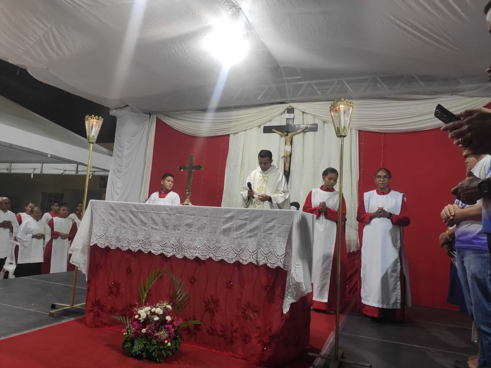 A programação teve início às 18h, com uma procissão das crianças, que saiu da capela em direção à Igreja Matriz, em um momento marcado pela alegria, espiritualidade e participação das famílias. Às 19h, aconteceu a novena, seguida, às 19h30, da Santa Missa, celebrada pelo padre Breno, da Paróquia São Sebastião.