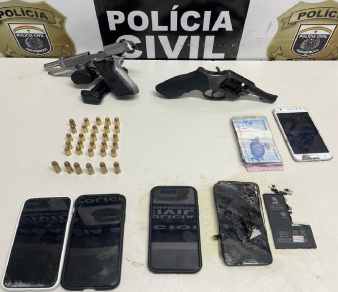 No momento da captura, foram apreendidas duas armas de fogo — uma pistola calibre .380, acompanhada de dois carregadores municiados, e um revólver calibre .38 municiado — além da motocicleta, capacete e aparelho celular pertencentes à vítima do latrocínio.
