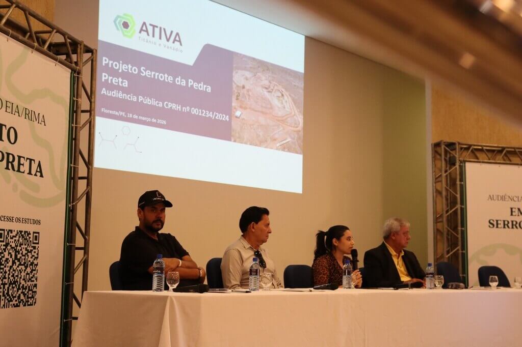 Na primeira parte da audiência o tempo foi dividido para as apresentações da Ativa Mineração, responsável pelo empreendimento, e a empresa Ferreira Rocha, que fez a consultoria ambiental. Foram explanados o EIA/RIMA mostrando as principais características do empreendimento, com seus impactos, ações mitigadoras e compensatórias. Também estavam presentes a vice-prefeita de Floresta, Bia Numeriano, representantes do Ministério Público, secretários e vereadores do município.