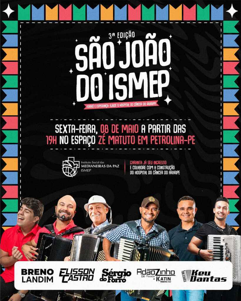 O Instituto Social Medianeiras da Paz (Ismep) realizará no dia 08 de maio, sexta-feira, às 19h, na casa de show Zé Matuto em Petrolina, a 3ª  edição do São João solidário em prol da construção do  Hospital do Câncer do Sertão Araripe (HCSA) na cidade de Araripina.