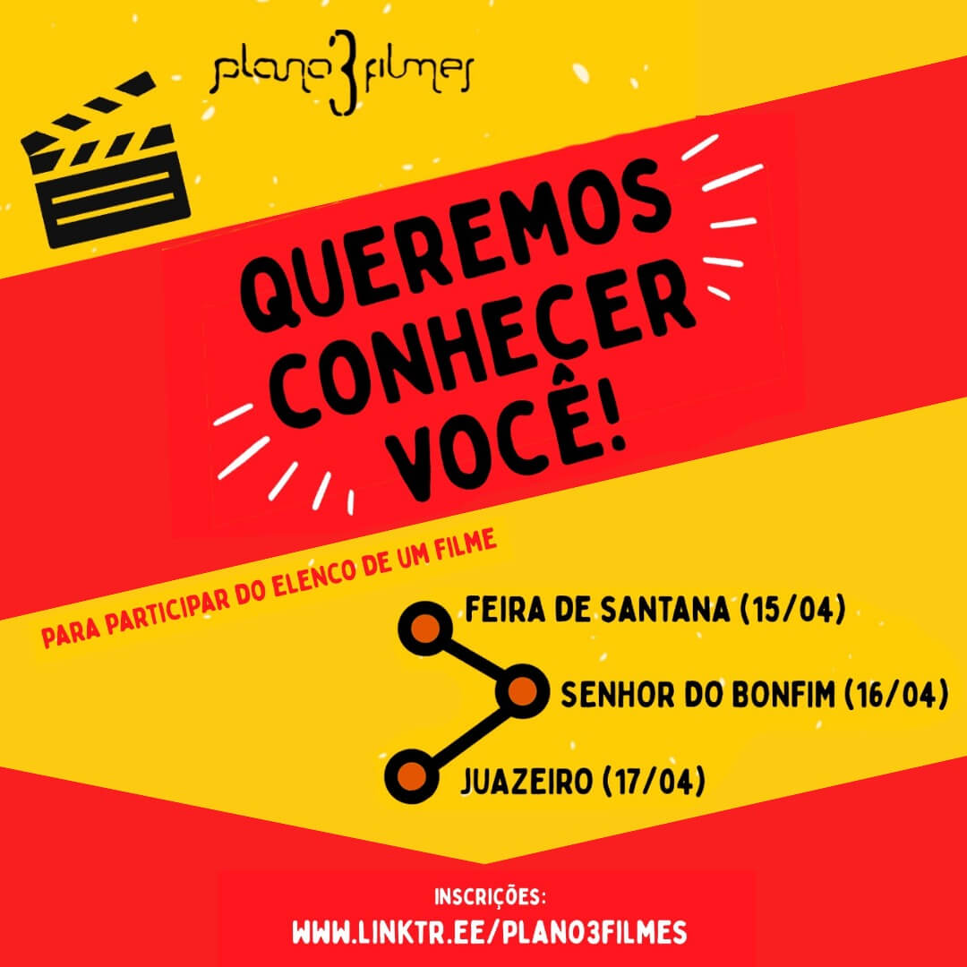Com o apoio da Universidade Federal do Vale do São Francisco (Univasf), será realizada, nesta sexta-feira (17), no Campus Juazeiro, uma seleção de elenco da Plano 3 Filmes. As entrevistas serão realizadas no Bloco de sala de aulas, no primeiro andar, das 14h às 16h e das 17h às 20h. Podem participar todas as pessoas interessadas a partir de 16 anos, com ou sem experiência prévia de atuação, sendo ou não estudante da Universidade.