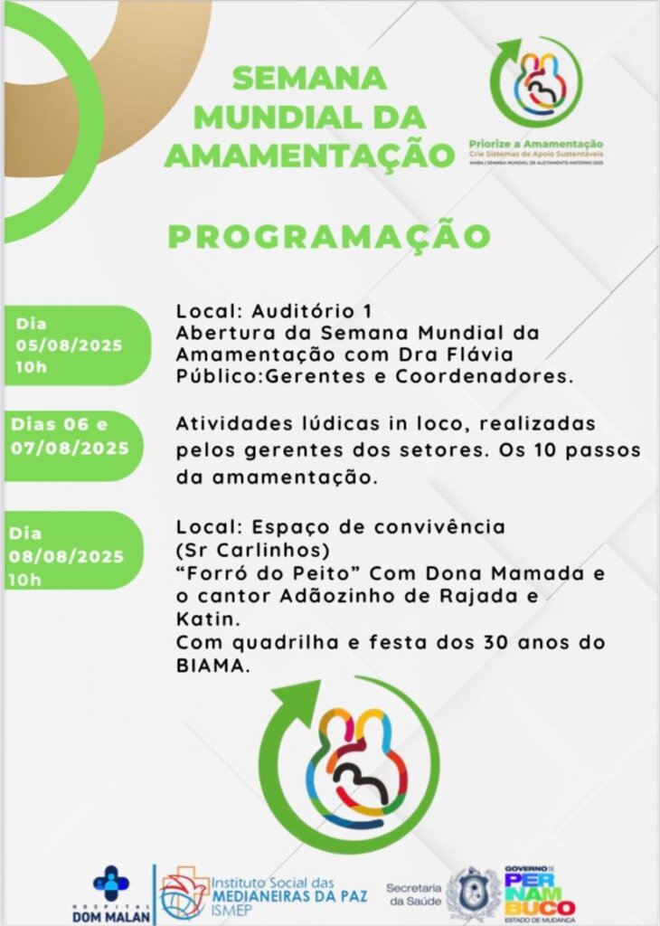 Ao som de Adãozinho de Rajada e Katin, a tradicional “quadrilha da amamentação” colocou todo mundo para dançar. Já os irreverentes personagens Dona Mamada e o Zé do Peito, arrancaram risadas e aplausos do público presente, levando com leveza uma mensagem séria sobre a importância da amamentação.