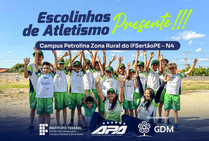 A Associação Petrolinense de Atletismo (APA) anunciou a implantação de uma nova unidade do projeto Escolinhas de Atletismo Inclusivo. O polo será no Campus Zona Rural do Instituto Federal do Sertão Pernambucano (IFSertãoPE), localizado no Núcleo 4 do Projeto de Irrigação Senador Nilo Coelho, em Petrolina.