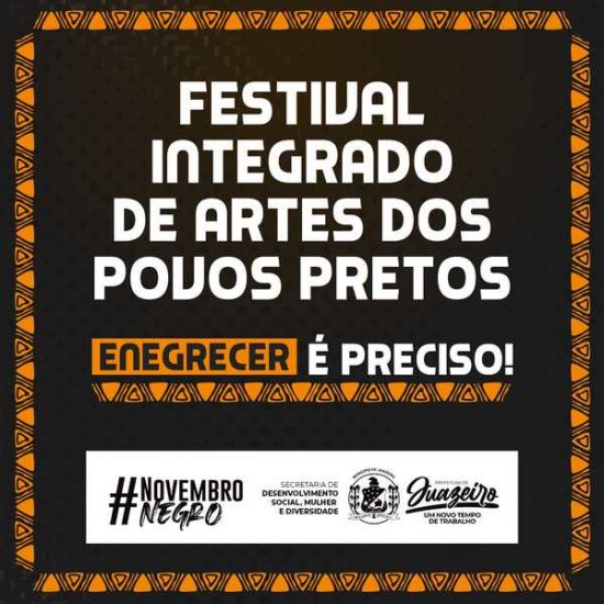 A Prefeitura de Juazeiro, através da Secretaria de Desenvolvimento Social, Mulher e Diversidade (Sedes) e da Secretaria de Cultura, Turismo e Esportes (Seculte), encerra, nesta terça-feira (30), as atividades do I Festival Integrado de Artes dos Povos Pretos (FIAPP). O evento, que integra a programação do ‘Novembro Negro’, será realizado na Pracinha da Cultura (antiga Praça CEU), no Tabuleiro, a partir das 18h.