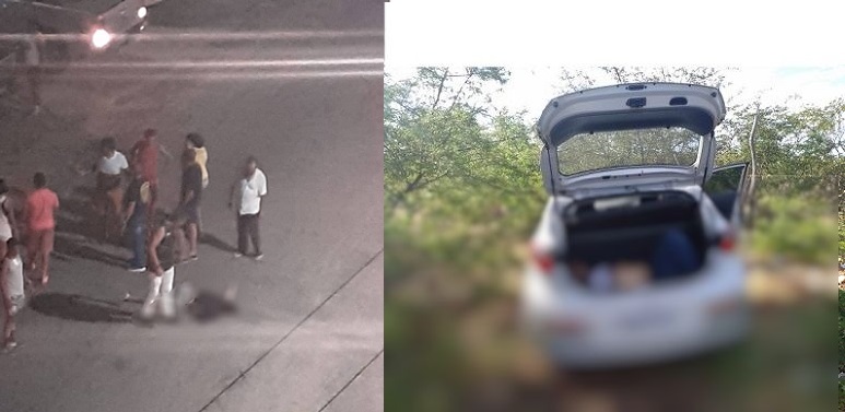 O PRIMEIRO registrado foi por volta das 14h40. A Polícia Militar tomou conhecimento de um carro abandonado na estrada da Adutora. Chegando ao local os PMs ao fazerem buscas para encontrar documentações e identificar o proprietário, ao abrir o porta-malas foi encontrado o corpo de um homem identificado pelo nome, Alex Sander Martins de Souza, idade 48, com sinais de espancamento