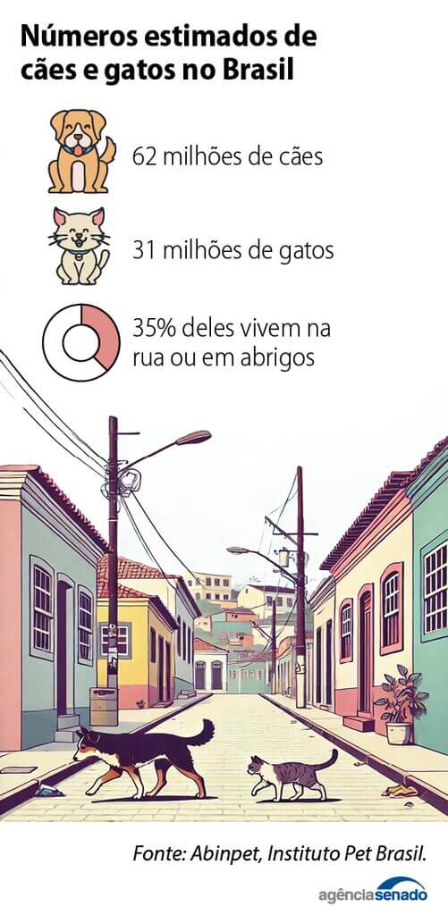 De acordo com Paim, há no país cerca de 62 milhões de cães e quase 31 milhões de gatos, dos quais, aproximadamente 35% vivem nas ruas ou em abrigos. O parlamentar também mencionou uma estimativa de que o Brasil tem a terceira maior população de animais de estimação do mundo, atrás apenas da China e dos Estados Unidos. Ao considerar a causa animal uma questão de humanidade e de saúde pública, Paim disse que a percepção sobre o tema ficou mais aguçada após a tragédia climática vivenciada pelo Rio Grande do Sul em 2024.