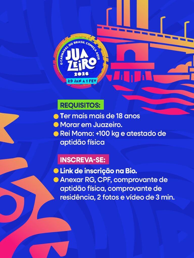 O Carnaval de Juazeiro 2026 é uma iniciativa da Prefeitura Municipal, por meio da Secretaria de Cultura, Turismo e Esportes, e neste ano vai receber artistas consagrados e ídolos populares. O destaque fica por conta de Ivete Sangalo, símbolo da música baiana que leva o nome de Juazeiro para o mundo, além de grandes atrações como Bell Marques, Igor Kannário, João Gomes, Psirico, Parangolé, Edson Gomes, Jammil, Rafa e Pipo Marques, Alexandre Leão, Filhos de Jorge, Luiz Caldas, Armandinho, entre muitos outros.